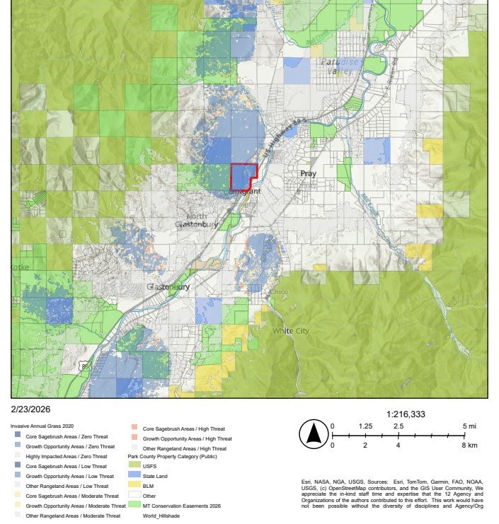 Map of FWP 2020 Sagebrush Biome IAG Framework & Park County Ownership